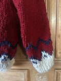 手紡ぎ毛糸のセーター久々にケイトさんのセーターをいただきました。 手紡ぎの毛糸で手編み、この温もりはたまりません。 大好きです。 こげ茶色に鮮やかなイエローとブルーの配色も私好み。 この度もありがとうございました。
