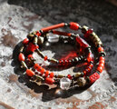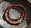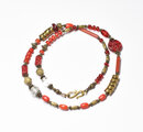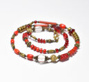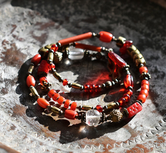 スネークのようなずっしりとしたブラスビーズを合わせました。スネークブラスの赤いビーズは日本のヴィンテージビーズです。