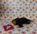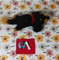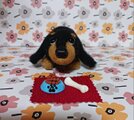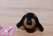 - デザイン: 上目遣いの可愛いダックス 赤いリボン付き