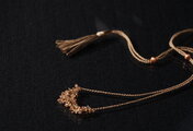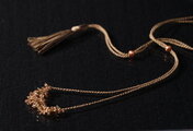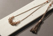 アネモネカラー・天然石と絹のネックレスパールの位置によって、長さはもちろんトップの形を変えられるのがユニークで変化が楽しめて嬉しいです。 以前ネックレスを落としてしまったことがあるので、被り式のネックレスは安心して身につけられて助かります。 ネック部分やタッセルがシルクで、汗ばむ季節にも肌あたりが柔らかそうで嬉しいです。トップに合わせたタッセルの色合いも好きです。 素敵な作品をありがとうございました!