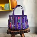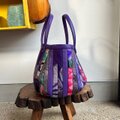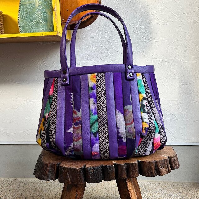 パープルの牛革と着物の生地(古布)でパッチワークをして作りました。