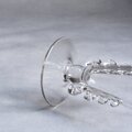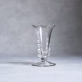 アメリカのアンティーク市場でも根強い人気を誇る、Heisey(ハイゼイ)社製の「Lariat(ラリアット)」シリーズのフラワーベース。1942年に発表された、当社を代表する人気シリーズです。カウボーイが使う投げ縄(ラリアット)のような、くるんとしたループ状の装飾が特徴です。安価なガラスとは一線を画す「透明度の高さ」と「重厚感」が魅力の1点。