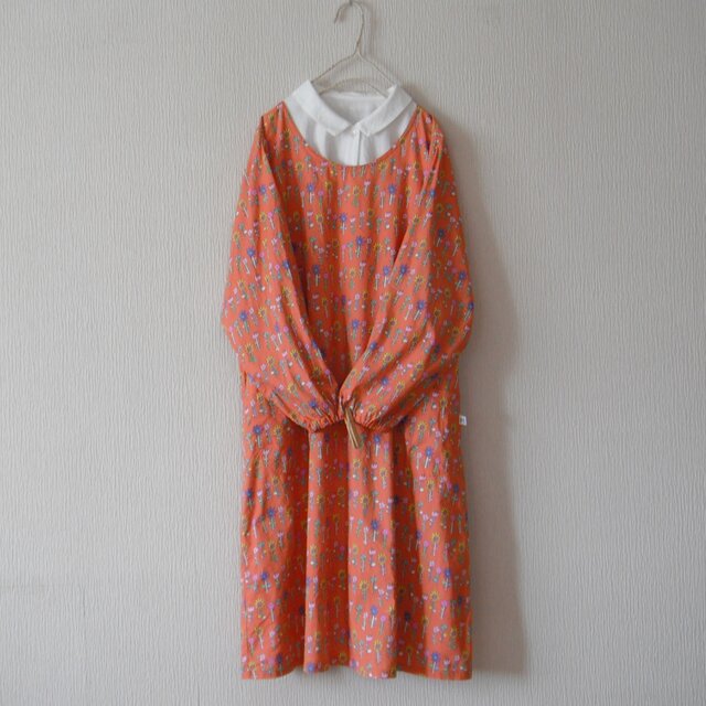 体をすっぽり包んでくれるAラインワンピースに見えるかっぽう着。