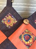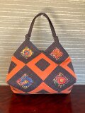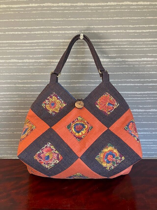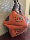 いつも素敵なバッグをありがとうございます。今回も大満足です。柿渋染めとバティックの渋い柄の取り合わせが絶妙です。丸い木の取手は持ちやすく、アクセントのボタンもいい感じ。華美さんのバッグはとてもセンスが良い上にこまかいところまで配慮が行き届いており、大変丁寧なお仕事です。またご縁がありましたらよろしくお願いします。
