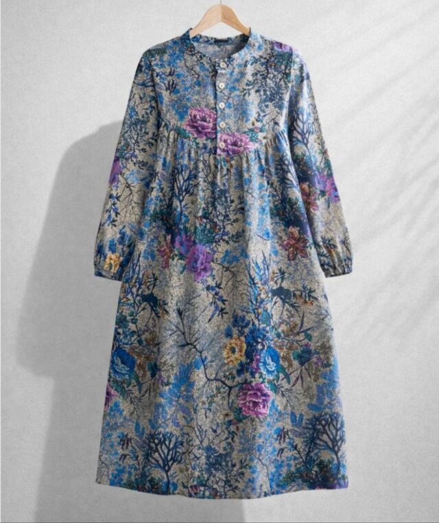 リネン100% ワンピース 花柄 長袖 ワンピ レディース!