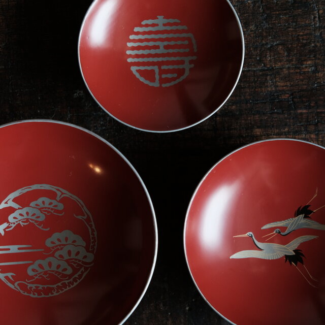 赤も発色が良く綺麗な印象の漆器3つセット販売になります。