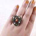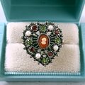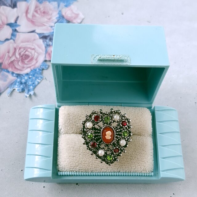 《Uncas》heart cameo faux pearl red lime green アンカス ヴィンテージリング