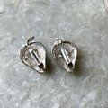 シルバートーンのストロベリーモチーフイヤリング。梨地になった微細なテクスチャーと、リアルなストロベリーをイメージできるレトロなデザイン。