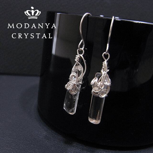 水晶ポイント(磨き)にワイヤーアートを施した、シンプルなピアスです。