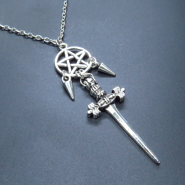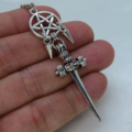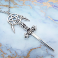 アンティークシルバー ソード(剣)とペンタグラム(五芒星)のネックレス スパイク アジャスター付