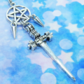 細身の鋭角なソード(剣)とペンタグラム(五芒星)を組み合わせたペンダントネックレスです