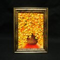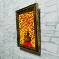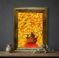 本作品では、ホルベインの油絵具を使用しており、暖色系の色彩構成が見る人を明るく照らします。特に、アンティークゴールドの額縁がその魅力を一層引き立て、飾る空間を華やかな雰囲気に仕上げます。また、スタンド付きと金具付きで、壁ならびにテーブルに置いても手軽に飾ることができ、さまざまなインテリアにマッチします。