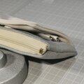 ベージュは、カバー、帯、ホックの本体側、ファスナー、本体のポケット側です。