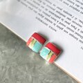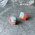 シャーベットカラーが印象的なブロックデザインのシルバートーンスクエアイヤリング。