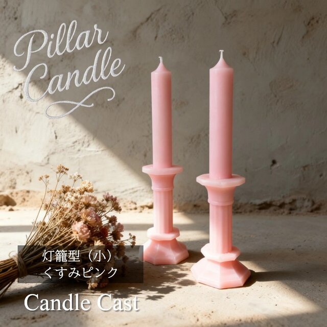 【ピラーキャンドル】灯籠型(小)キャンドル:くすみピンク:2本セット
