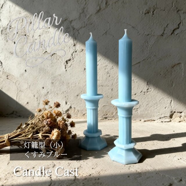 【ピラーキャンドル】灯籠型(小)キャンドル:くすみブルー:2本セット