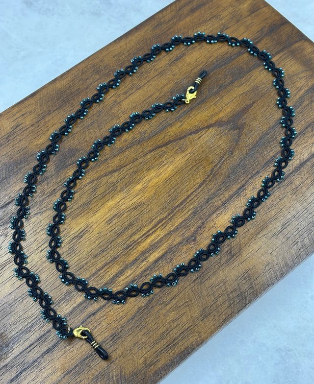 繊細なタティングレースで眼鏡チェーンを作りました。
