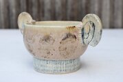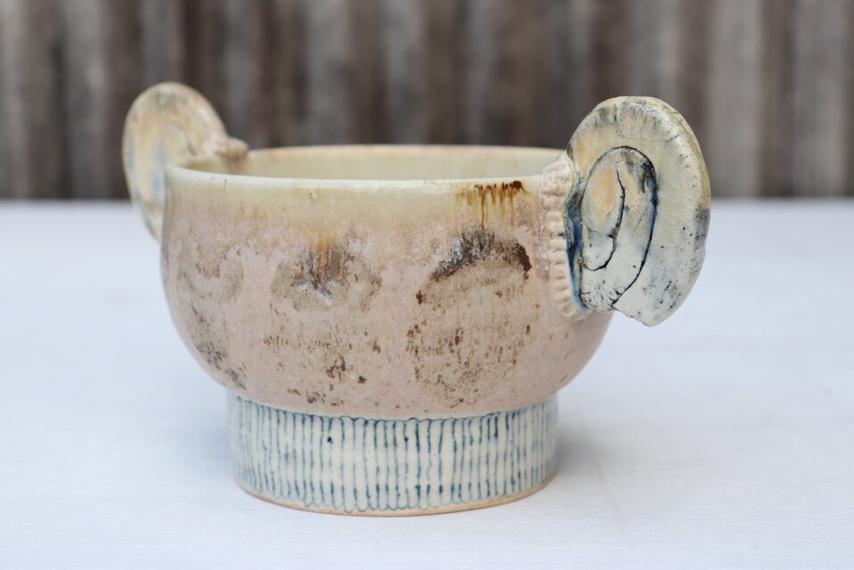 注意;両耳は把手ではありません。両耳をそっと下から抱え込むように、または、スプーンなどとともにご使用いただけたらと思います。
