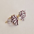 重なり合う中心の花びらにはクリームホワイトと落ち着いたボルドーの生地を、サイドにはクリームホワイトとくすみピンクをあしらい、全体に柔らかなニュアンスと奥行きを持たせました。