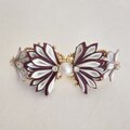 中央には柔らかな光を放つコットンパール風ビーズと輝くビジューをあしらい、華やかさの中にも落ち着いた大人の女性らしさを演出しています。