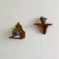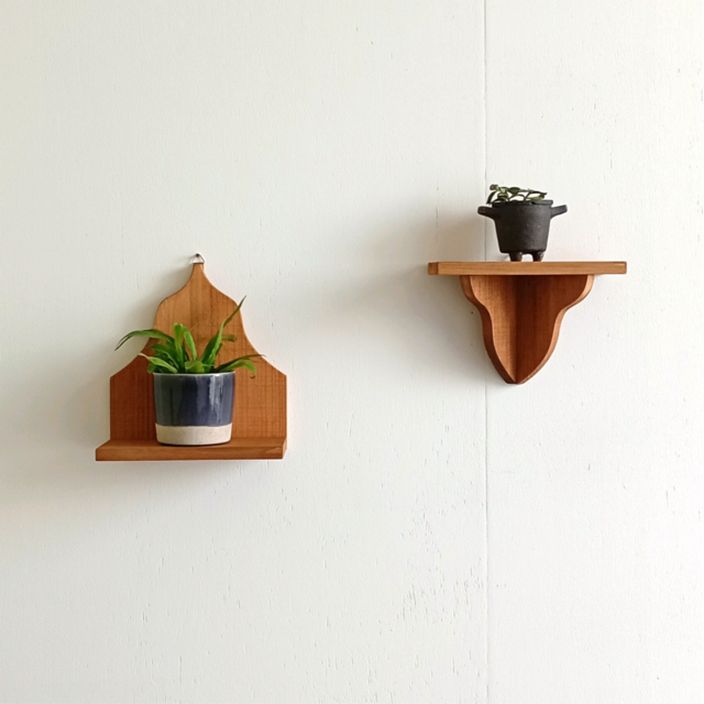 印象深いデザインか特徴の小ぶりな2個組ウォールシェルフです。
