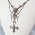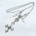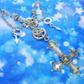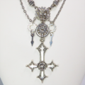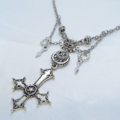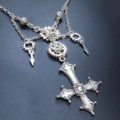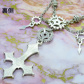存在を誇示するかのような大きなゴシック調の逆さ十字架(逆ロザリオ)と歯車を組み合わせたスチームパンク風ペンダント・ネックレスです