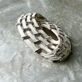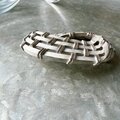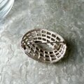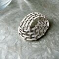 シルバートーンをベースにホワイトエナメルペイントされた、バスケットウィーブブローチ。
