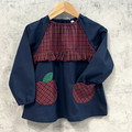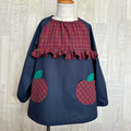【*80〜160】りんごポケット タータンチェック 赤 長袖スモック 胸元フリル 着丈延長可
