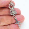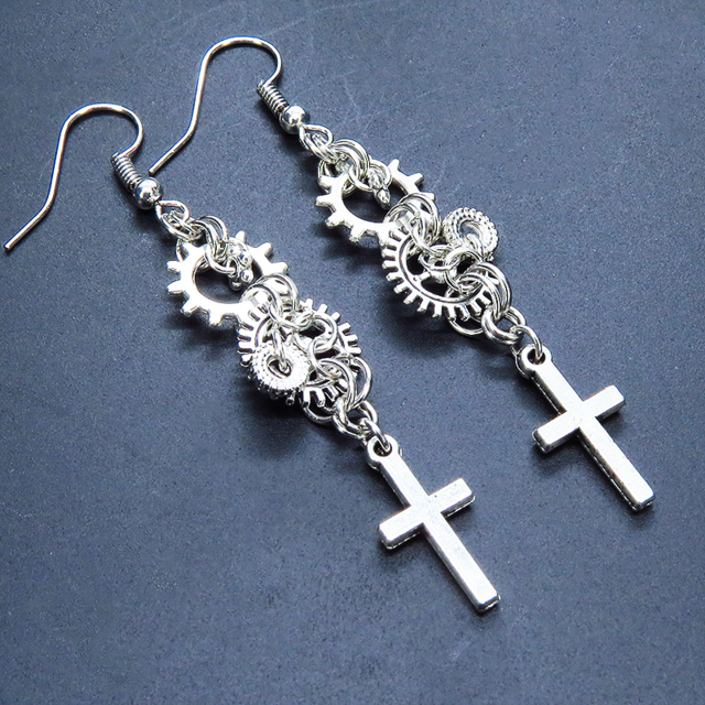 アンティークシルバー ロザリオ(十字架)と歯車を組合せたピアス スチームパンク風 コンパクト