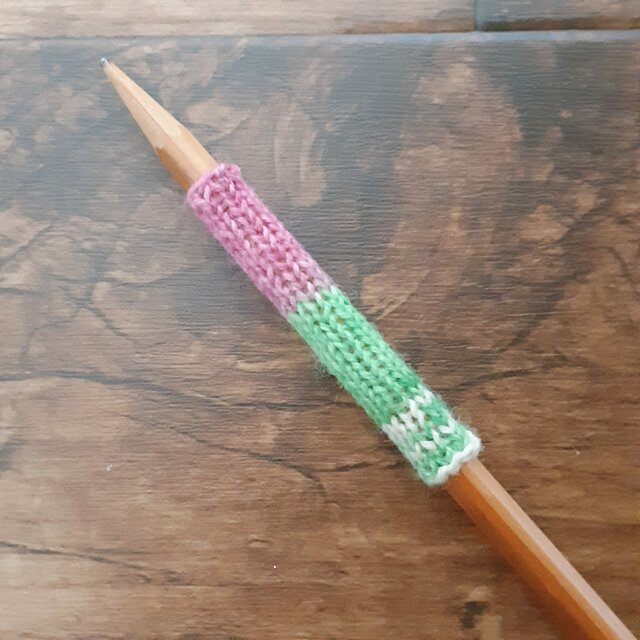 opal毛糸で編んだ鉛筆キャップです。