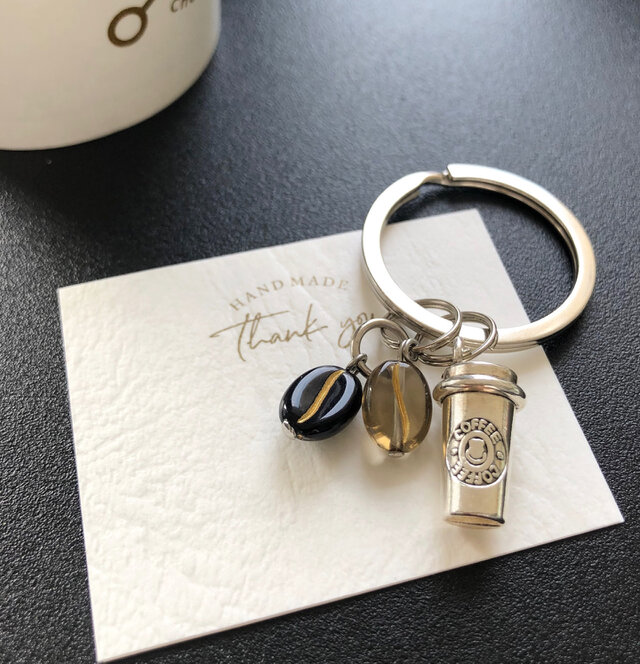 珈琲好きさんにピッタリ❗️タンブラー&コーヒー豆のチャーム付きキーリングです✨✨
