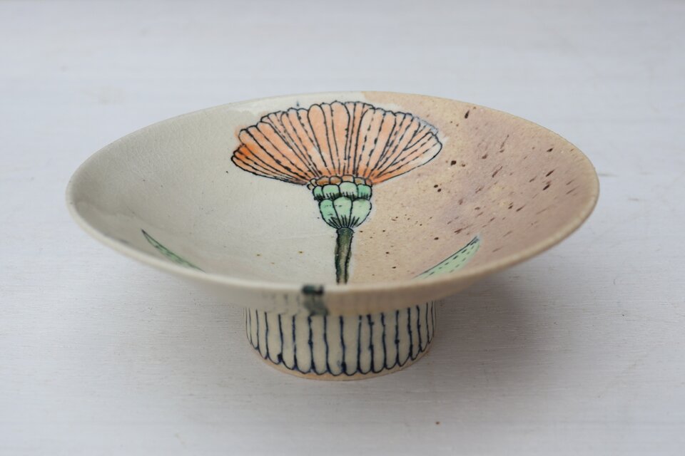 小鉢 開花③いつも丁寧な対応に、素敵な品で感謝です。 手に取って心地良い存在感に、花弁広がる縁が可愛くて、見てて飽きないいっぱいの点々が楽しいです。 入れたものが美味しく映える黒が、独特の輝きでカッコええです。 またお気に入りが増え嬉しく、ありがとうございます。