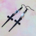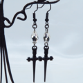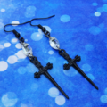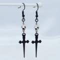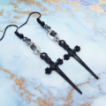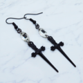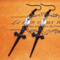 シャープな黒いソード(剣)モチーフとスワロフスキー・クリスタルを組合せたピアス
