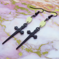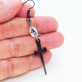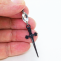 黒いシャープなソード(剣)のモチーフにスワロフスキー・クリスタル(クリア)を組合せたピアスです