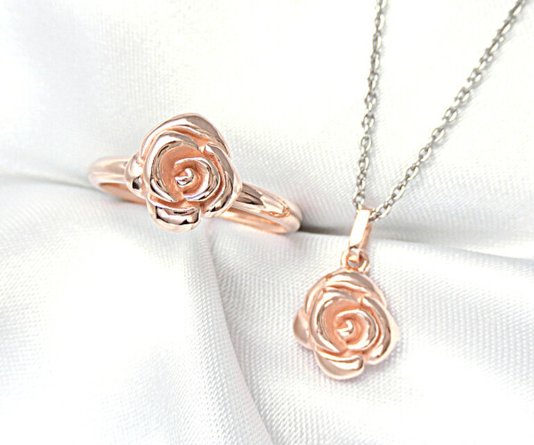 ピンクローズ{薔薇}のリング&ペンダントセット:シルバー製