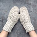 冬の空気の中で、手元をあたたかく包み込むハンドニットのミトンです。