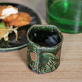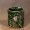 焼き上がった湯のみは濃厚な緑色で、茶色い模様部分もポイントになっています。