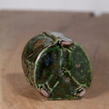 織部の色は、黄色や青色が混じって深緑色になり、釉薬の濃度が濃い部分は結晶が出ます。