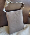 しっかりしたリネンのテープで作ったショルダーベルトを付けています。
