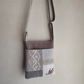 リネン、コットンなど異なる素材をパッチワークし、アンティークレース、小鳥のクロスステッチを施したショルダーバッグです。