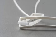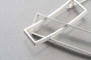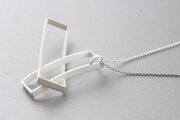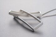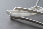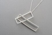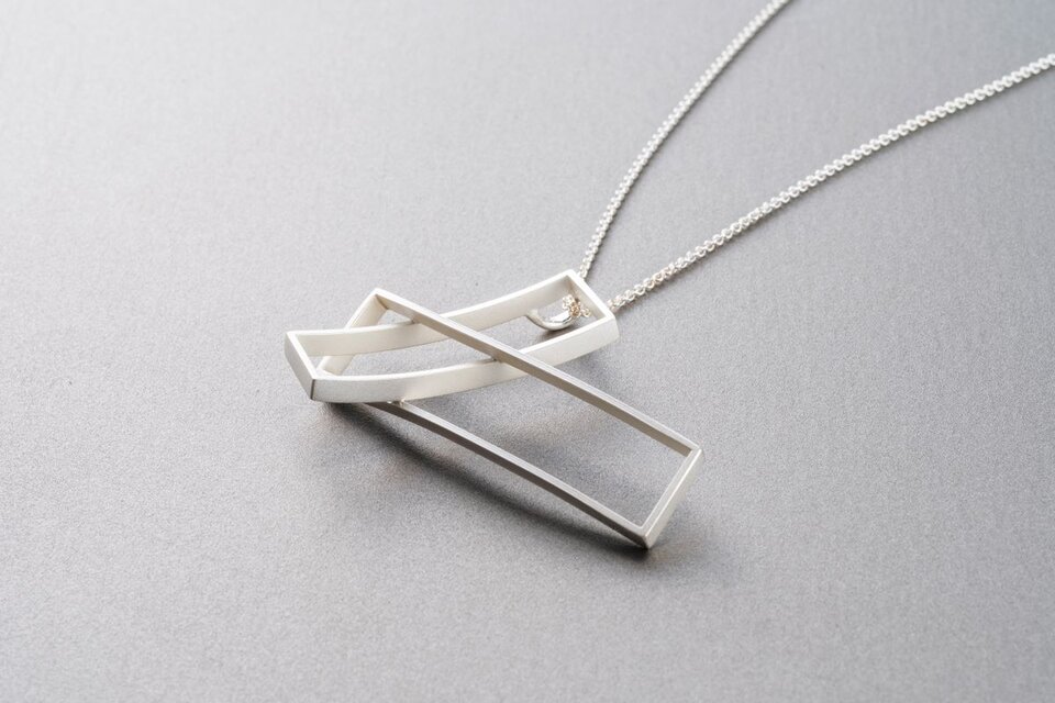 4つの角がすべて直角のsilverの長方形。それを指で少し湾曲させ、組み合わせたジュエリーです。
