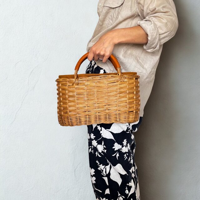 全ての工程を全て手作業で丁寧に行っております。天然素材やカゴがお好きな方、一つのものを永く大切に扱って下さる方に持って頂きたい作品です。