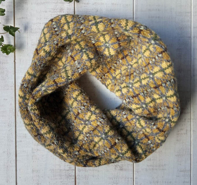 メビウスの輪のようにねじって編んであります。ナチュラルなドレープで襟元を暖かく!