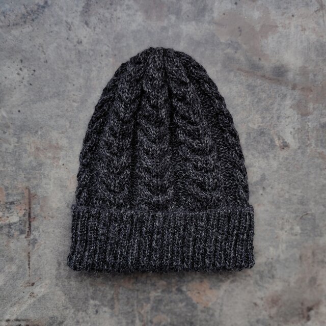 Hand-knitted Cuffed Beanie / Double Cables / Baby alpaca