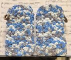 暖かいお日様の光が空色の空を明るくしているようなリストウォーマーを制作しみました