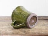 素地に化粧泥を掛けてから藁で模様を描きオリーブ釉を施釉して焼成しています。