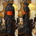 和洋折衷ワンピース 着物アンサンブル セミロング 名古屋帯サッシュベルト付き 深淵の黒に灯るオレンジの鼓動 aKW-130