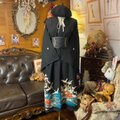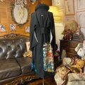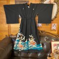 【 黒留袖 着物 リメイク ワンピース ドレス セミロング 和洋折衷 洗える 化繊 ハンドメイド レトロ 古着 浅葱の波に舞う吉祥の鶴 TKW-113】