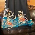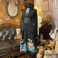 黒留袖 着物 リメイク ワンピース ドレス セミロング 和洋折衷 洗える 化繊 浅葱の波に舞う吉祥の鶴 TKW-113