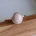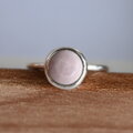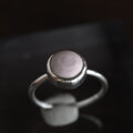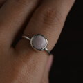 柔らかな青みを帯びた、絶妙なニュアンスカラーのピンクオパール。 一般的な「可愛らしいピンク」とは違う、どこか凛とした静かな佇まいの石をシルバーリングに仕立てました。